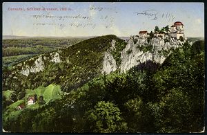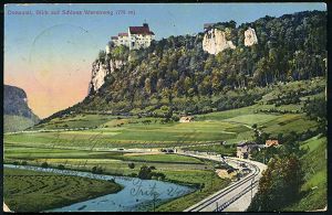5395 | 12 € | POSTLEITRAUM 7700 (OHNE SINGEN) : HEUBERG/ (BZ KONSTANZ)/ TRUPPEN=/ ÜBUNGSPLATZ 1913 (14.5.) 1K-Brücke = Hauspostamt Truppenübungsplatz auf EF 5 Pf. Germania auf Bedarfs-Color-Ak.: Donautal mit Schloß Werenwag n. Grenzach (Mi.85 I) | ![]() ![]() | |