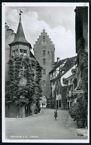 5476 | 12 € | POSTLEITRAUM 7700 (OHNE SINGEN) : MEERSBURG (BODENSEE)/ weinfrohe/ Burgenstadt 1938 (20.9.) HWSt (Burg, 2 Trauben) klar gest. s/w.-Foto-Bedarfs-Ak.: Obertor (Bo.2) | ![]() ![]() | |