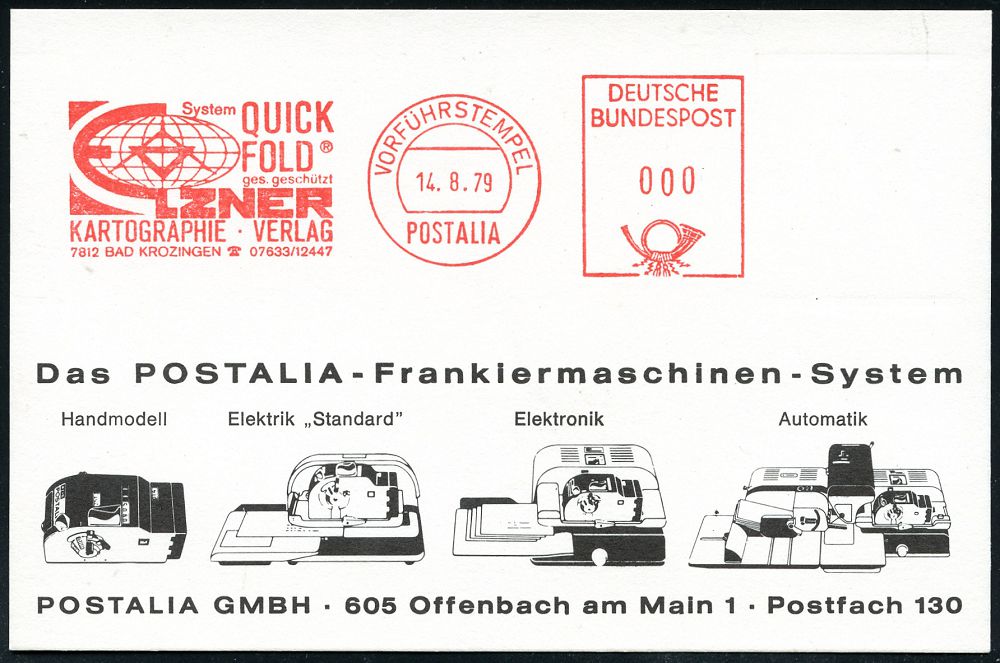 5662 | 18 € | POSTLEITRAUM 7800 (OHNE FREIBURG) : 7812 Bad Krozingen 1979 (14.8.) AFS: VORFÜHRSTEMPEL/POSTALIA/System QUICK/FOLD../ELZNER/KARTOGRAPHIE VERLAG = Globus, Zirkel, Dreieck, seltene Postalia-Musterkt.! (= Specimen) | ![]() | |