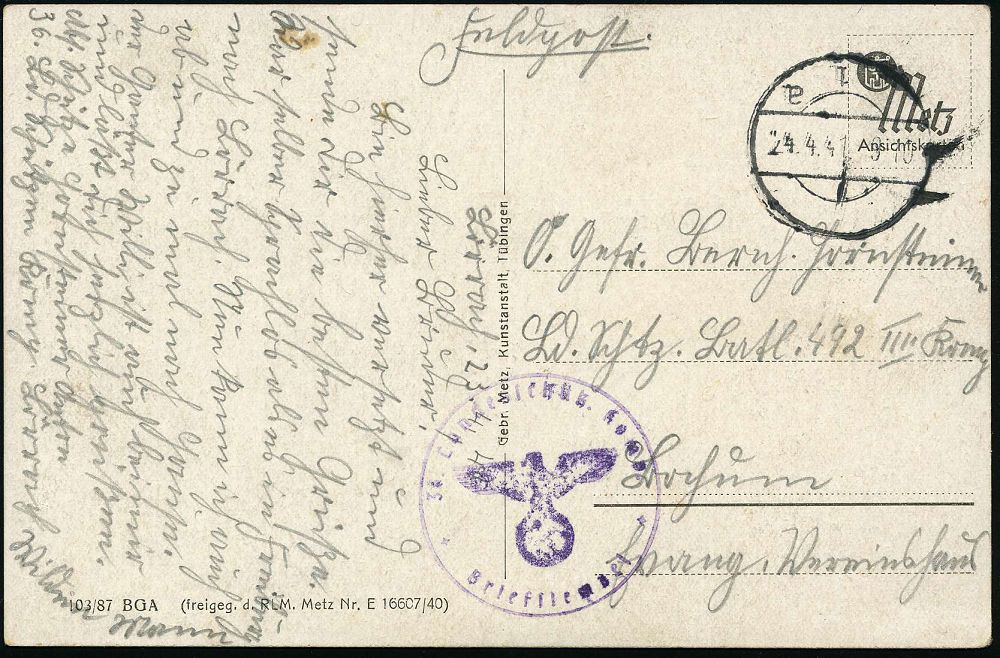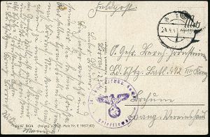 5725 | 15 € | POSTLEITRAUM 7800 (OHNE FREIBURG) : Lörrach 1941 (24.4.) stumme 1K-Brücke mit kopfstehendem Datum = Tarnstempel Lörrach + viol. 1K-HdN: 36. Landesschütz. Komp., s/w.-Feldpost-Ak.: Lörrach Totalansicht m. Industrie an Ld. Schtz. Batl. 492 in Berlin | ![]() ![]() | |