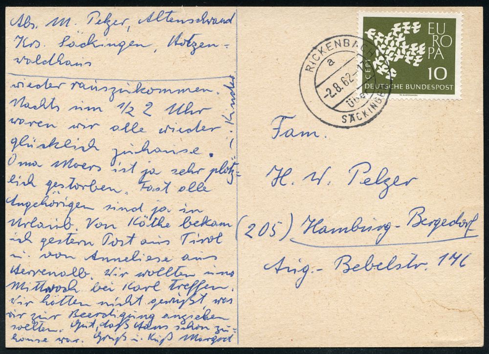 5760 | 10 € | POSTLEITRAUM 7800 (OHNE FREIBURG) : RICKENBACH/ a/ über/ SÄCKINGEN 1962 (2.8.) aptierter 2K-Steg = alte PLGZ entfernt , klar gest. Inl.-Karte | ![]() | |