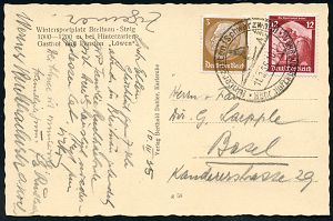 5706 | 16 € | POSTLEITRAUM 7800 (OHNE FREIBURG) : Hinterzarten (Schwarzwald)/ Höhenluftkurort 900m 1935 (11.3.) HWSt = Ski-Abfahrtsläufer , klar gest. s/w.-Foto-Ak.: Wintersportplatz Breitnau-Steig (vom Gasthaus "Löwen") Bedarfs-Ausl.-Kt. n. Basel (Bo.1) | ![]() ![]() | |