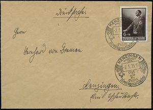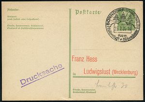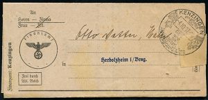 5717 | 18 € | POSTLEITRAUM 7800 (OHNE FREIBURG) : KENZINGEN/ ..Obst/ u.d./ guten/ Breisgau-Weine 1939 (2.5.) HWSt (Pflaume, WeintTraube) auf EF 6 + 19 Pf. Hitler (Mi.694 EF + 15.- EUR) Inl.-Drs.-Bf. (Bo.1, Bochmann 1939 unbekannt!) | ![]() | |