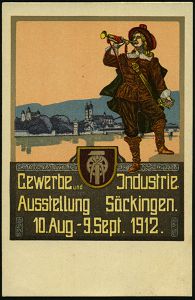 5761 | 20 € | POSTLEITRAUM 7800 (OHNE FREIBURG) : Säckingen 1912 seltene Color-Litho-Ak.: Gewerbe u. Jndustrie Ausstellung Sept. 1912 = Trompeter von Säckingen , ungebr., | ![]() ![]() | |