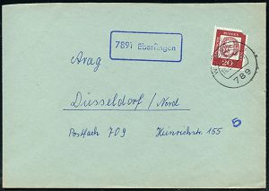 5673 | 12 € | POSTLEITRAUM 7800 (OHNE FREIBURG) : 7891 Eberfingen 1963 (14.3.) blauer Ra. = PSt.II + 1K-Segment: 789 WALDSHUT 1/k , Fern-Bf. | ![]() | |