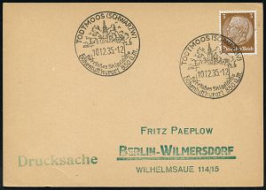 5807 | 25 € | POSTLEITRAUM 7800 (OHNE FREIBURG) : TODTNAU (SCHWARZW)/ Name u.Zeichen/ ZAHORANSKY/ ..Fabrik für Bürstenmaschinen 1937 (6.3.) AFS Francotyp "Reichsadler" 225 Pf. + schw. Paketzettel: Todtnau/ (Schwarzwald) (natürliche Leimspuren) + Transit-Label: München (3 Bhf.), Ausl.-Paket-Kt. n. Zagreb, rs. jugoslaw. Tax- u. Fiskalmarken, seltene Portostufe! (Dü.E-5CEo) | ![]() ![]() | |