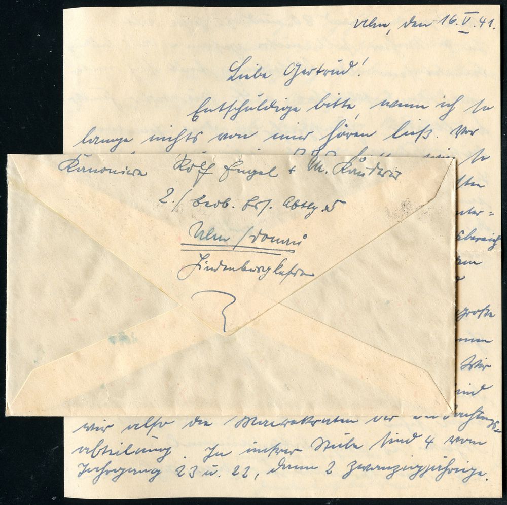 5869 | 15 € | 7900 ULM : ULM (DONAU) 1/ a/ Postgut/ Ermäßigte/ Gebühr.. 1941 (17.5.) BdMWSt (Paket) + roter 1K-HdN: 2. Batterie/Beob. Ers. Abt. 5. auf Feldpost-Bf. + Inhalt an weibl. RAD, Jüglingen (Bo.S 193 Bd) | ![]() | |