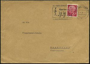 5870 | 12 € | 7900 ULM : (14a) ULM (DONAU) 1/ w/ ..3.u.10.8. Histor.Fischerstechen 1958 (25.4.) MWSt = Boot mit 3 Ruderern u. Fischer mit Lanze , Bundeswehr-Bf. an Flugabwehrschule n. Rendsburg. (Bo.25 A) | ![]() | |