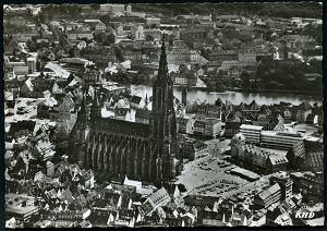 5871 | 14 € | 7900 ULM : (14a) ULM (DONAU) 1/ w/ ..3.u.10.8. Histor.Fischerstechen 1958 (23.7.) MWSt = Boot mit 3 Ruderern u. Fischer mit Lanze auf s/w.-Foto-Ak.: Luftbild der Stadt mit Münster u. Donau, Bedarf (Bo.25 A) | ![]() ![]() | |