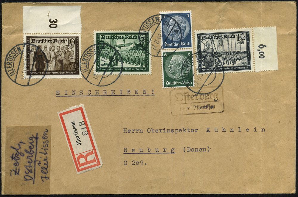 6048 | 20 € | POSTLEITRAUM 7900 (OHNE ULM) : ILLERTISSEN 1941 (17.11.) 1K-Brücke + Ra.2: Osterberg/über Jllertissen = PSt.II + RZ: Jllertissen , Frankatur Postkameradschaft 6 Pf., 10 Pf. u. 16 Pf. etc., Fern-R-Bf. (Mi.705, 707, 710 u.a., + 16.- EUR) | ![]() | |