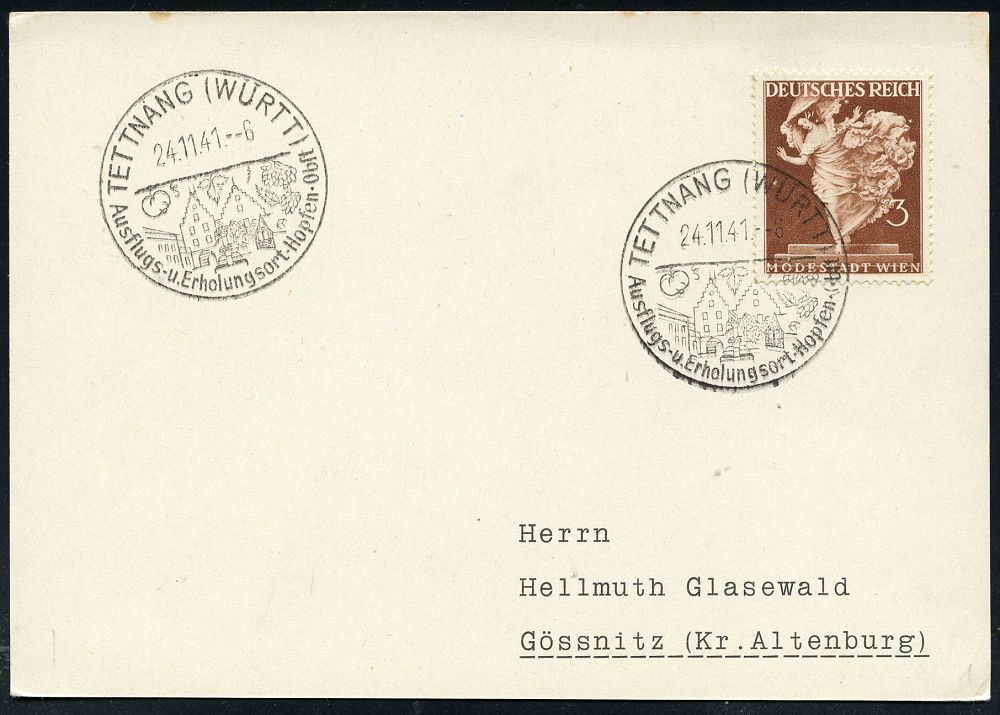 6125 | 18 € | POSTLEITRAUM 7900 (OHNE ULM) : TETTNANG (WÜRTT)/ ..Erholungsort-Hopfen-Obst 1941 (24.11.) seltener HWSt (Apfel/Hopfen-Früchte etc.) klar gest. Inl.-Karte = ex Slg. Glaswald! (Bo.1 Erstjahr) | ![]() | |