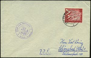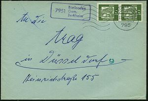 5979 | 12 € | POSTLEITRAUM 7900 (OHNE ULM) : (14b) FRIEDRICHSHAFEN/ a 1957 (30.8.) 2K-Steg + viol. 2K-HdN: Gruß vom Bodensee/ Schiff Austria , EF 20 Pf. IBA Berlin, Fernbf. in die DDR (Mi.161 EF) | ![]() | |