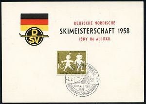 6060 | 16 € | POSTLEITRAUM 7900 (OHNE ULM) : (14b) ISNY(WÜRTT)/ 29.JAN.-2.FEBR./ DEUTSCHE NORD.SKIMEISTERSCHAFT 1958 (2.2.) SSt (Sprungschanze) vs. auf DSV-Sonder-Kt. (Bo.6) | ![]() | |