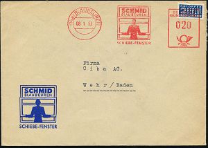5946 | 16 € | POSTLEITRAUM 7900 (OHNE ULM) : (14a) BLAUBEUREN/ Schmid/ ..SCHIEBE-FENSTER 1953 (8.1.) AFS Francotyp = Person am Schiebefenster auf 2 Pf. NoB (= Vorausentwertung) motivgl. Reklame-Firmen-Bf. (Dü.E-23CG) | ![]() | |