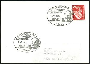 6002 | 6 € | POSTLEITRAUM 7900 (OHNE ULM) : 7990 FRIEDRICHSHAFEN 1/ CLAUDE DORNIER/ FESTAKT/ 100.TODESTAG 1984 (14.5.) SSt = Kopfbild und Do "X" , klar gest. Inl.-Karte | ![]() | |