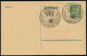6112 | 18 € | POSTLEITRAUM 7900 (OHNE ULM) : SAULGAU/ BEZIRKS-GEWERBE-AUSSTELLUNG 1928 (6.7.) HWSt (Merkurhut, Gildewappen) klar gest. Inl.-Karte (Bo.1 , nur wenige Wochen 1928 verwendet) | ![]() | |