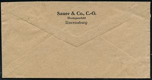 6099 | 12 € | POSTLEITRAUM 7900 (OHNE ULM) : RAVENSBURG/ **/ Gebühr bezahlt 1946 (23.4.) Doppel-Oval-PFS mit Uhrzeit, rs. Abs.-Vordruck: Sauer & Co., C.-G., Bankgeschäft.. , Barfrankatur-Fern-Bf. n. Ffm. (Dü.A-5, Nr.20 b) | ![]() ![]() | |