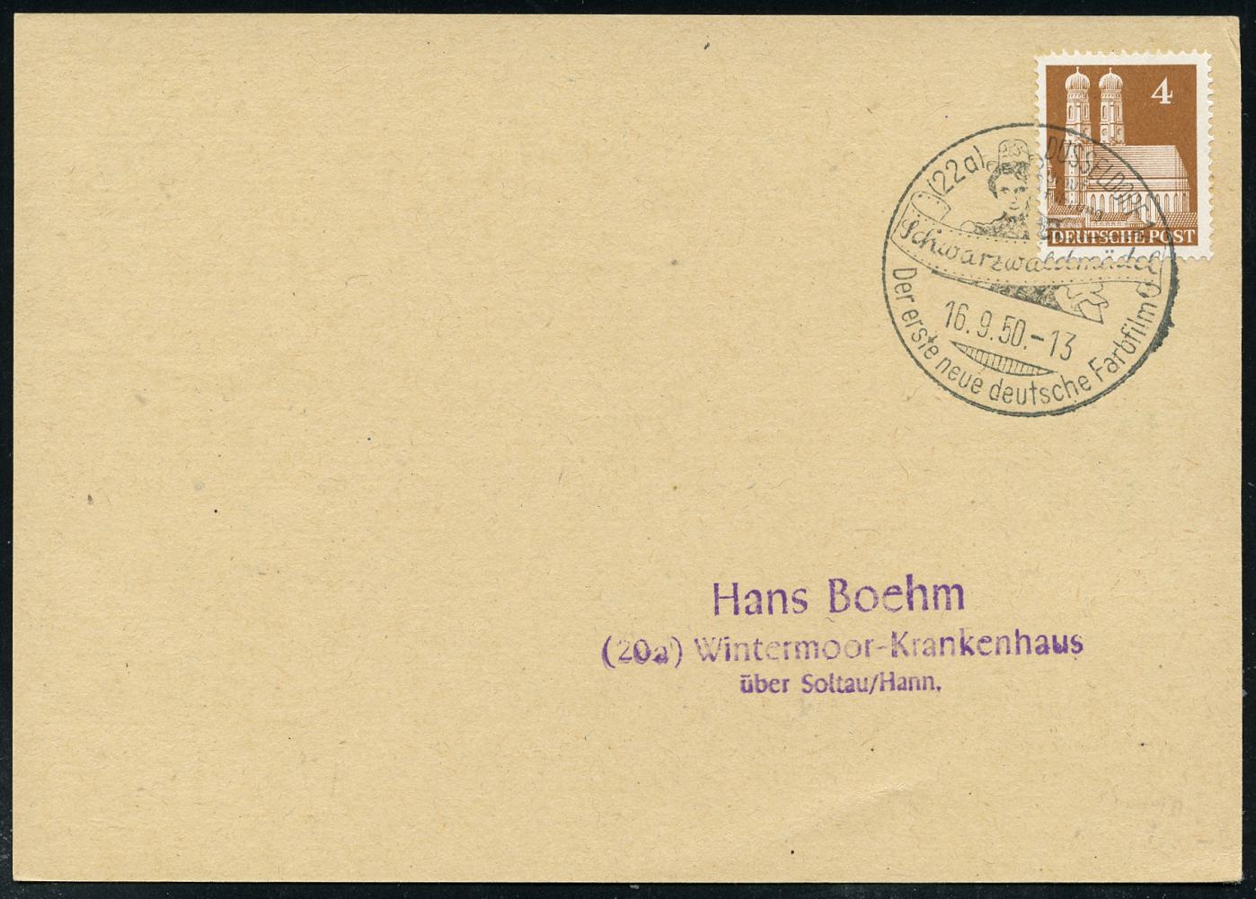 6219 | 15 € | 4000 Düsseldorf Sonderstempel : (22a) DÜSSELDORF 1/ Schwarzwaldmädel/ Der erste neue deutsche Farbfilm 1950 (16.9.) seltener SSt (Kopf einer Frau) Inl.-Drs.-Karte (Bo.72) | ![]() | |