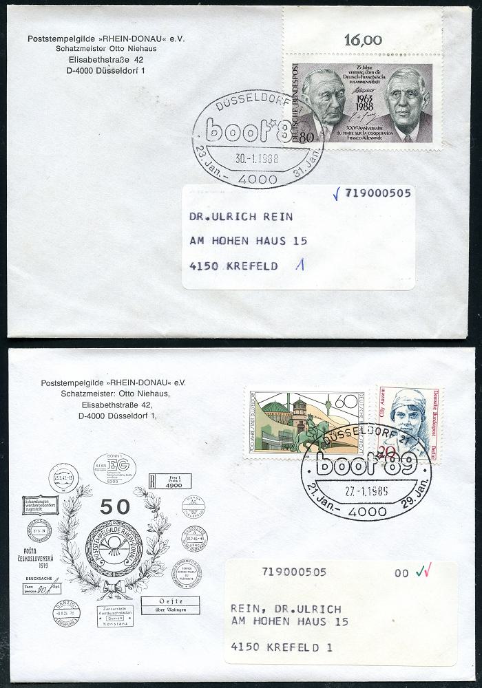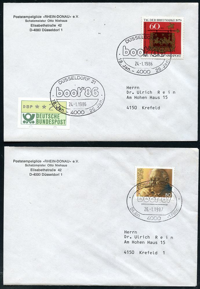 6258 | 30 € | 4000 Düsseldorf Sonderstempel : 4000 DÜSSELDORF 21/ boot´86 #bzw.# boot´87 # bzw.# boot´88# bzw.# boot´89 1988/89 4 verschiedene SSt = der Boot-Messe Düsseldorf , je klar auf Bedarfs-Bf. (Einzelverkauf möglich: je 8.- EUR) 4 Belege (Gesamtpreis:) | ![]() ![]() | |