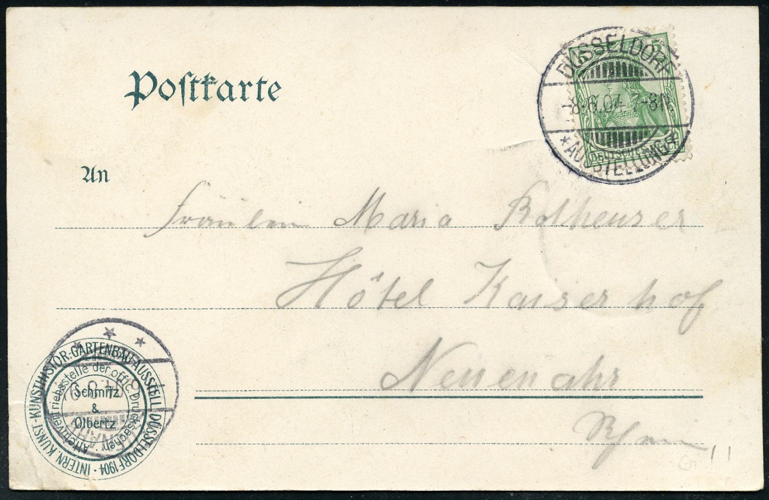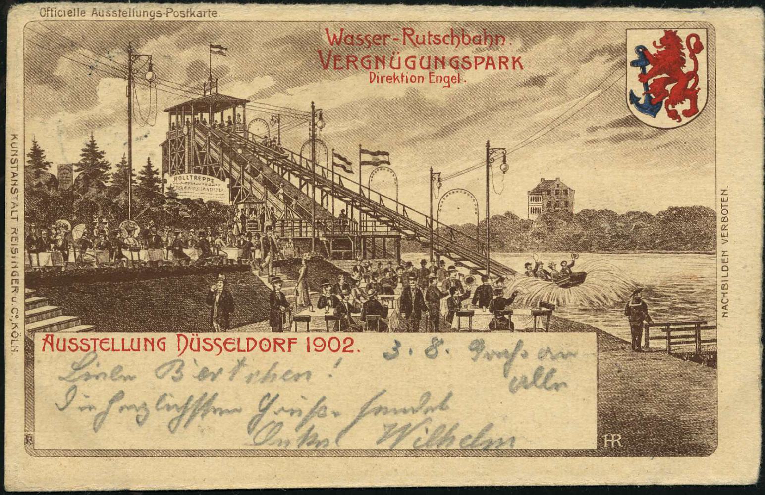 6194 | 35 € | 4000 Düsseldorf Sonderstempel : DÜSSELDORF/ *AUSSTELLUNG/ a 1902 (3.8.) SSt + Ausst.-Vignette + 1K-HdN: JNDUSTRIE- & GEWERBE-AUSSTELLUNG..1902 , dekorative Ausstellungs-Sonder-Kt.: Wasser-Rutschbahn m. Rolltreppe/VERGNÜGUNGSPARK, Bedarf! (Bo.6 Ty.II = UB "a") | ![]() ![]() | |