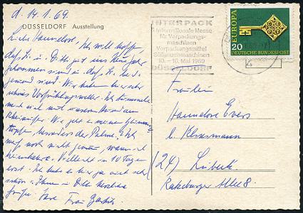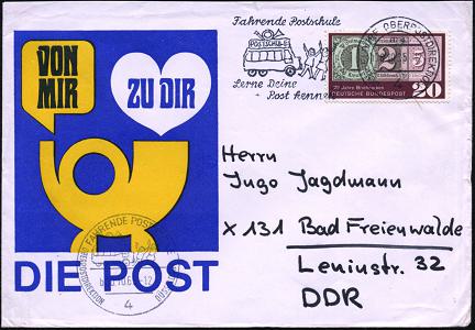 6309 | 18 € | 4000 Düsseldorf Maschinen- u. Serienstempel : 4 DÜSSELDORF OBERPOSTDIREKTION/ ma/ Fahrende Postschule.. 1965 (30.10.) seltener MWSt = mobiles Postamt (2 Kinder, Omnibus) + Hand-SSt.: 4 DÜSSELDORF OBERPOSTDIREKTION FAHRENDE POSTSCHULE/b auf passendem Sonderumschlag: DIE POST.. in die DDR (Bo.217 b) | ![]() | |