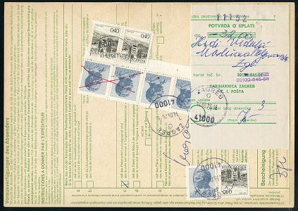 6380 | 20 € | 4000 Düsseldorf Post-Freistempel : Düsseldorf 18 -ma- 1975 (28.4.) viol. Registrierkassen-Paket-FS 7.20 (DM einzeilig) + brauner Paketzettel: 4 Düsseldorf 18 + 1K-Segment: 4 DÜSSELDORF 18 etc., Ausl.-Paket-Kt. n. Zagreb, rs. jugoslaw. Gebührenmarken + Gebührenzettel etc. (Dü.H-1B) | ![]() ![]() | |