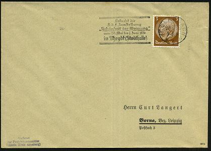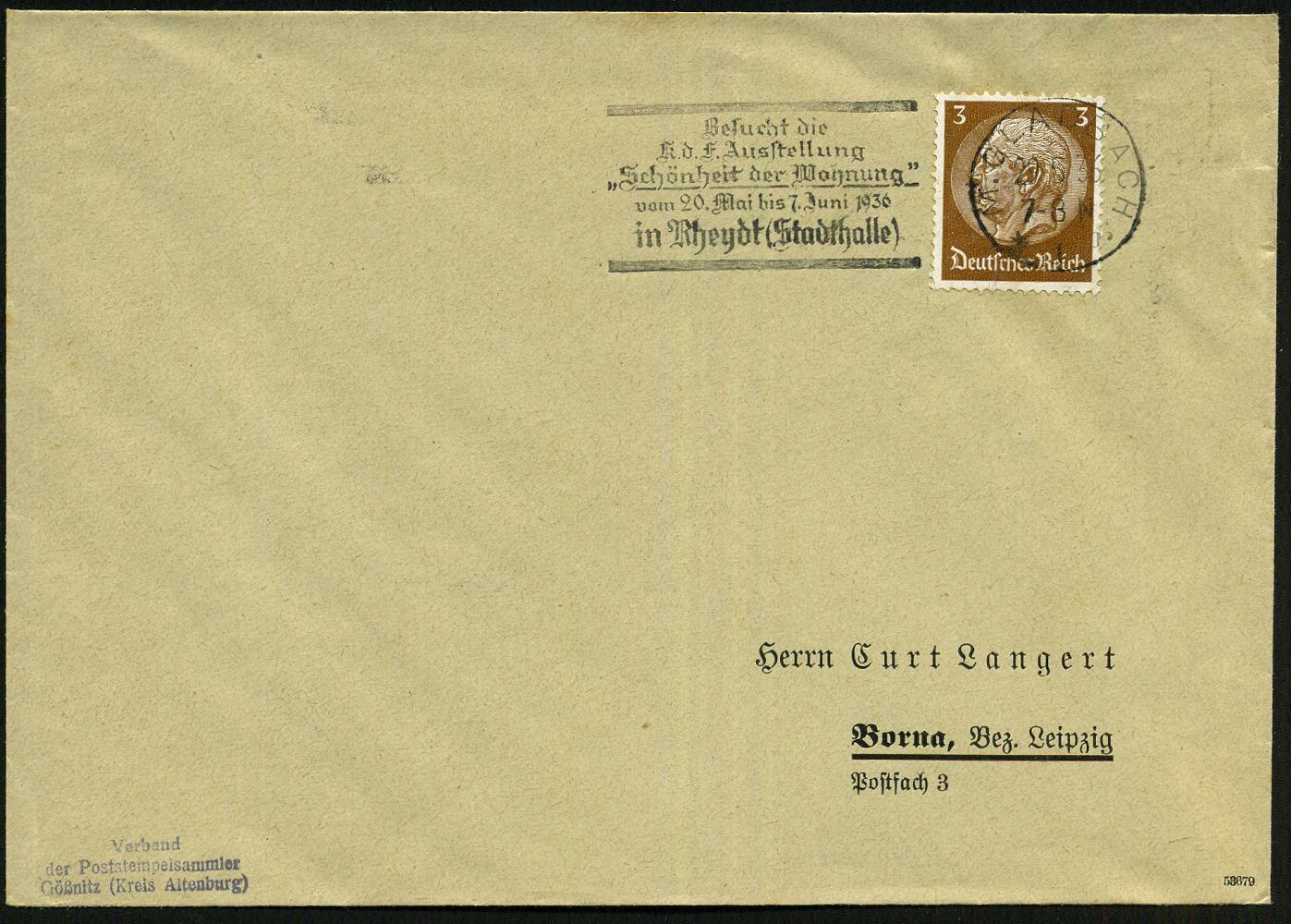 6723 | 20 € | 4050 Mönchengladbach : M.GLADBACH/ *1r/ Besucht die/ K.d.F. Ausstellung/ "Schönheit der Wohnung"/ ,,in Rheydt (Stadthalle) 1936 (29.5.) seltener Serien-MWSt klar auf Inl.-Bf. (Bo.S 211 A , nur in 2 Orten nur 21 Tage verwendet!) | ![]() | |