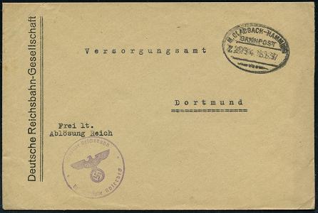 6729 | 18 € | 4050 Mönchengladbach : M.GLADBACH-HAMM(WF)/ BAHNPOST/ ZUG 2734 1937 (15.5.) alter Bahn-Oval mit Tilde + viol. Dienstsiegel-HdN: Deutsche Reichsbahn/ Bahnhof Aplerbeck + Vermerk "FdAR" , Dienst-Bf.: Deutsche Reichsbahn-Ges. n. Dortmund | ![]() | |