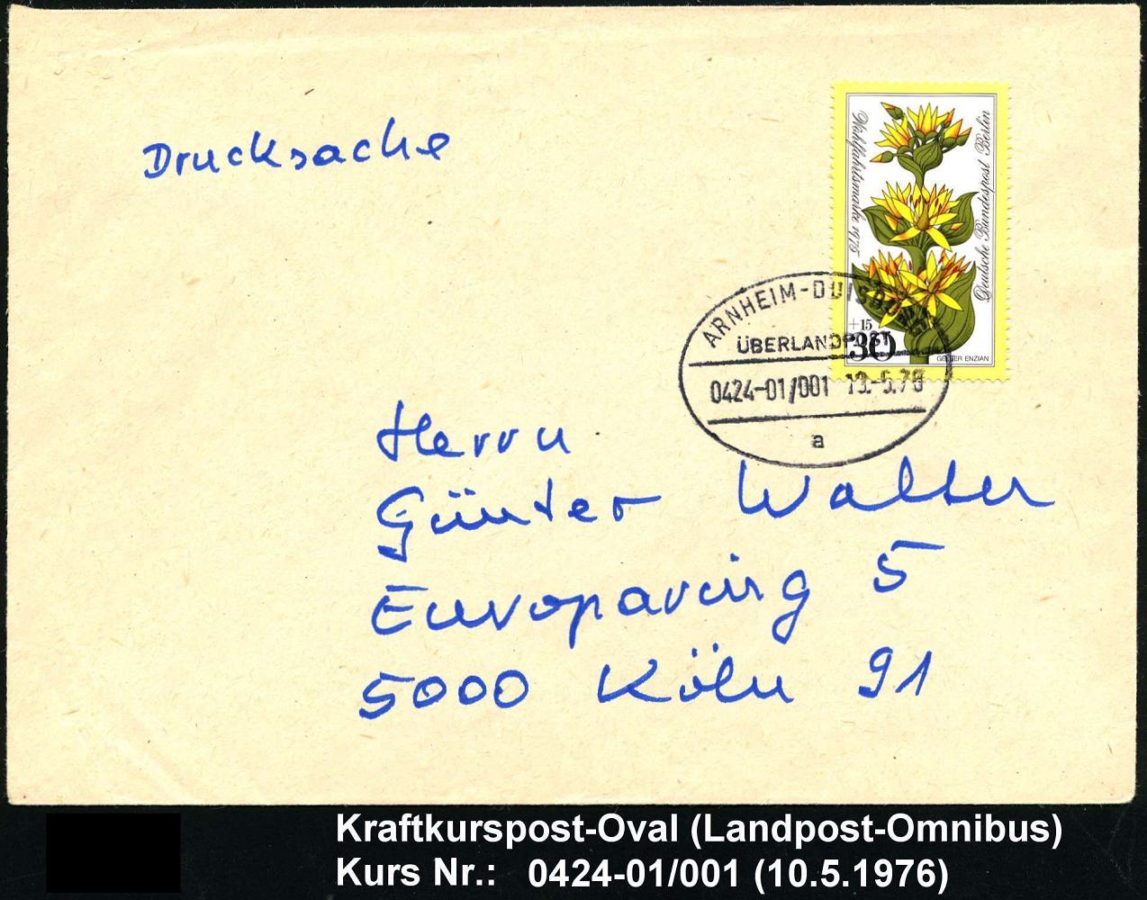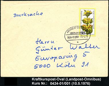 6810 | 15 € | 4100 Duisburg allgem. Belege, Tagesstempel, Ganzsachen etc. : ARNHEIM-DUISBURG/ ÜBERLANDPOST/ 0424-01/ 001/ a 1978 (13.5.) Oval-Stpl. = mobiles Postamt, Post-Überland-Omnibus von Holland n. Duisburg , klar gest Inl.-Brief | ![]() | |