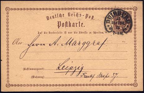 6798 | 20 € | 4100 Duisburg allgem. Belege, Tagesstempel, Ganzsachen etc. : DUISBURG 1874 (10.1.) H u f e i s e n - Stempel auf Inl.-P 1/2 Gr. (minim. , unsichtbare Nadelpkte) klar gest. Fernkt. (Mi.P 1) | ![]() | |