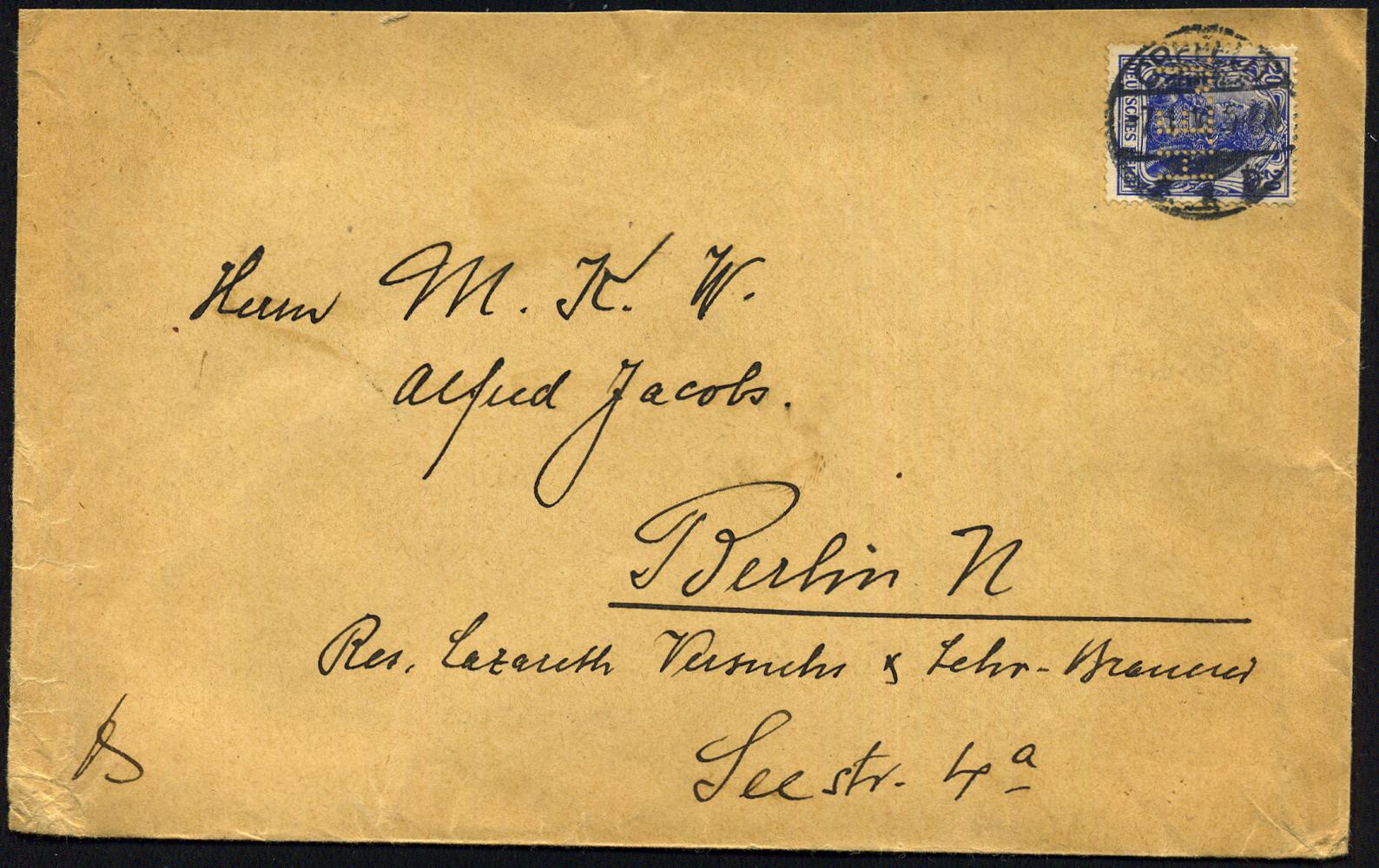 7047 | 16 € | 4150 Krefeld allgem. Belege, Tages-, Sonder- u. Maschinenstempel etc. : Krefeld 1916 (7.1.) 1K-Gitter: CREFELD/* 1 p auf EF 20 Pf. Germania, blau mit Firmenlochung: "H. E. J." (ohne Abs.) oben etw. knapp geöffneter Fern-Bf. an Res.-Lazarett Berlin N (Mi.87 EF, Perfin) | ![]() | |
