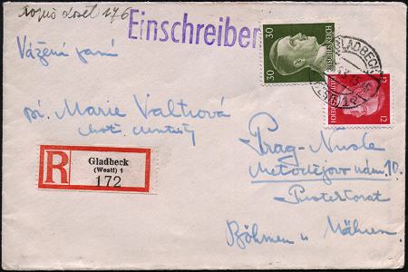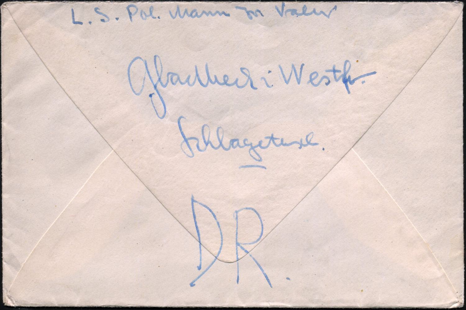 7463 | 30 € | PL-Raum 43.. (ohne Essen u. Mülheim/Ruhr) : GLADBECK/ (WESTF.)1/ a 1943 (15.6.) 1K-Brücke auf Hitler 12 Pf. u. 30 Pf. + RZ: Gladbeck/(Westf) 1, rs. Abs. eines tschechischen Luftschutz-Polizisten! "L. S. Pol. Mann.." (= Polizei!), R-Bf. n. Prag (Mi.794, 827) | ![]() ![]() | |