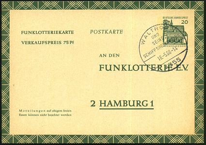 7509 | 18 € | PL-Raum 43.. (ohne Essen u. Mülheim/Ruhr) : 4355 WALTROP/ UND/ SEINE/ SCHIFFSHEBEWERKE 1962 (16.9.) HWSt auf Funklotterie-P 20 Pf. Bauwerke, grün (Mi.FP 12) seltene Verwendung!, Bedarf! (Bo.1) | ![]() ![]() | |