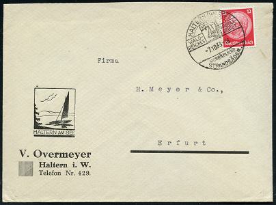 7470 | 16 € | PL-Raum 43.. (ohne Essen u. Mülheim/Ruhr) : HALTERN (WESTF)/ WALD-/ REICHES/ WANDER-/ GEBIET/ ..STRANDBÄDER 1933 (7.10.) HWSt (See mit Segelboot) moriv-ähnl. Firmen-Bf.: HALTERN AM SEE, V. Overmeyer.. (Bo.1) | ![]() | |