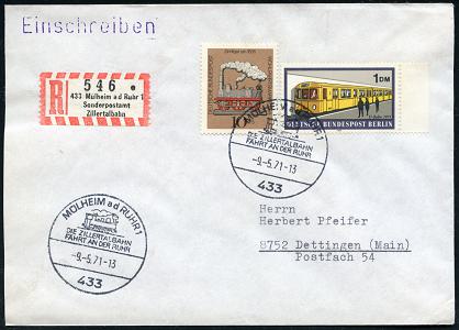 7550 | 20 € | 4330 Mülheim / Ruhr : 433 MÜLHEIM a d RUHR 1/ DIE ZILLERTALBAHN/ FÄHRT AN DER RUHR 1971 (9.5.) SSt = österr. Dampflok, 2x + Sonder-RZ: 433 Mülheim a d Ruhr 1/e/ Sonderpostamt/ Zillertalbahn (NEZ-Kat.Nr.132), Inl.-R-Bf. (Bo.20) | ![]() | |