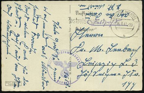 7617 | 18 € | 4400 Münster Maschinen- u. Serienstempel : MÜNSTER (WESTF) 2/ b/ Rechtzeitig/ Postreisescheck/ besorgen! 1941 (16.8.) Serien-MWSt + viol. 1K-HdN: Fliegerhorst-kommandeur/ Handorf , klar gest. Feldpost-Ak. (Trier) n. Leipzig (Bo.S 111 A) | ![]() | |