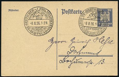 7950 | 20 € | 4600 Dortmund Sonderstempel : DORTMUND/ 32.DEUTSCHER PHILATEL.TAG 1926 (7.8.) SSt = Roland (mit Schwert) klar gest. Inl.-Karte (Bo.3) | ![]() | |