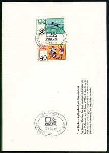 7964 | 20 € | 4600 Dortmund Sonderstempel : 46 DORTMUND/ WM 74/ FIFA World Cup 1974 (14.6.) SSt auf kompl.Satz Fußball-WM auf Schmuckblatt-Telegramm "Sport" (Griech. Jünglingskopf m.Siegeslorbeer) ungebr., seltene Verwendung! (Mi.811/12) | ![]() ![]() | |