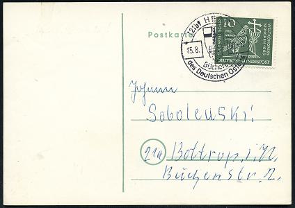 8091 | 12 € | PL-Raum 46.. (ohne Dortmund, Bochum, Gelsenkirchen) : 469 HERNE/ Bücherei des/ Deutschen Ostens 1960 (15.8.) HWSt = Kreuzritterschild (+ Bücher) Inl.-Karte (Bo.8) | ![]() | |
