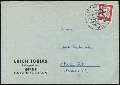 8093 | 12 € | PL-Raum 46.. (ohne Dortmund, Bochum, Gelsenkirchen) : 469 HERNE 1/ sa/ Bücherei d./ Dt.Ostens 1962 MWSt (Ritterschild, Bücher) Firmen-Bf.: ERICH TOBIAS.. (Bo.7 A, Erstjahr!) | ![]() | |