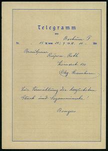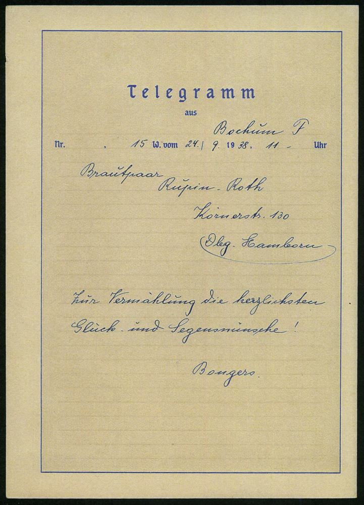 8120 | 20 € | 4630 Bochum allgem. Belege, Tagesstempel, Ganzsachen etc. : Bochum 1938 (24.9.) Schmuckblatt-Telegramm: Alpen-Panorama (Bergmassiv, Tannen, rs. Alpen-Blumen-Kranz) Fern-Telegramm aus Bochum (kl. Randkerbe) n. Duisburg-Hamborn (^C 187 Lx 4 (5.36) / ME.) | ![]() ![]() ![]() | |