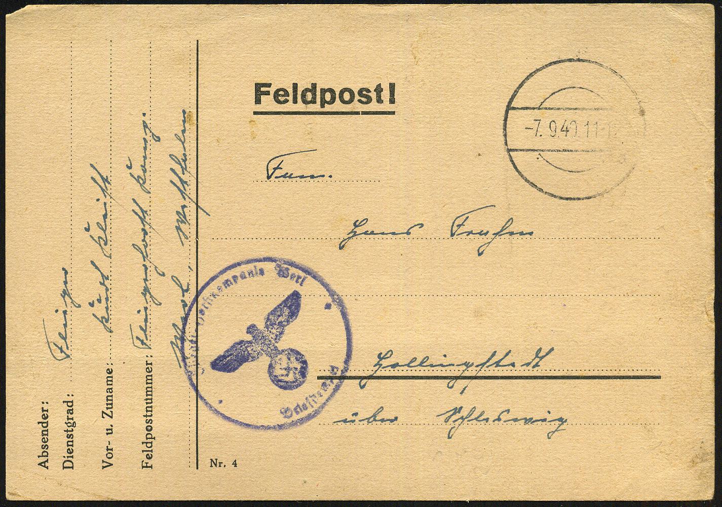8395 | 25 € | PL-Raum 47.. (ohne Hamm) : Werl 1941 (29.1./7.9.) 2x stumme 1K-Brücke = Tarnstempel Werl + viol. 1K-HdN: Flieger-Horstkompanie Wels + hs. Abs.: "..Fliegerhorst Komp., Wels..", Feldpost-Bf. (Öffnungsmäng.) + Inhalt: 1 Feldpost-Faltbf. aus Weimar, Lw. Aufkl. Gruppe - 2. Komp.Nohra II.. (roter 1K-HdN) u. Feldpost-Kt. n. Hollingstedt, 3 Belege | ![]() ![]() ![]() | |