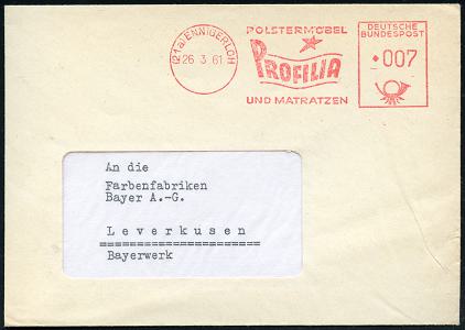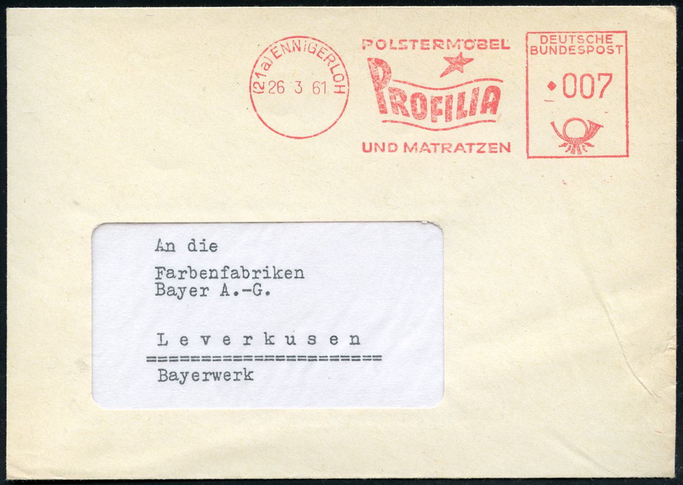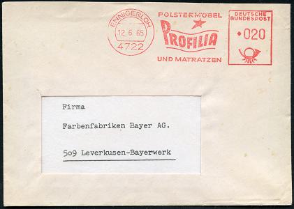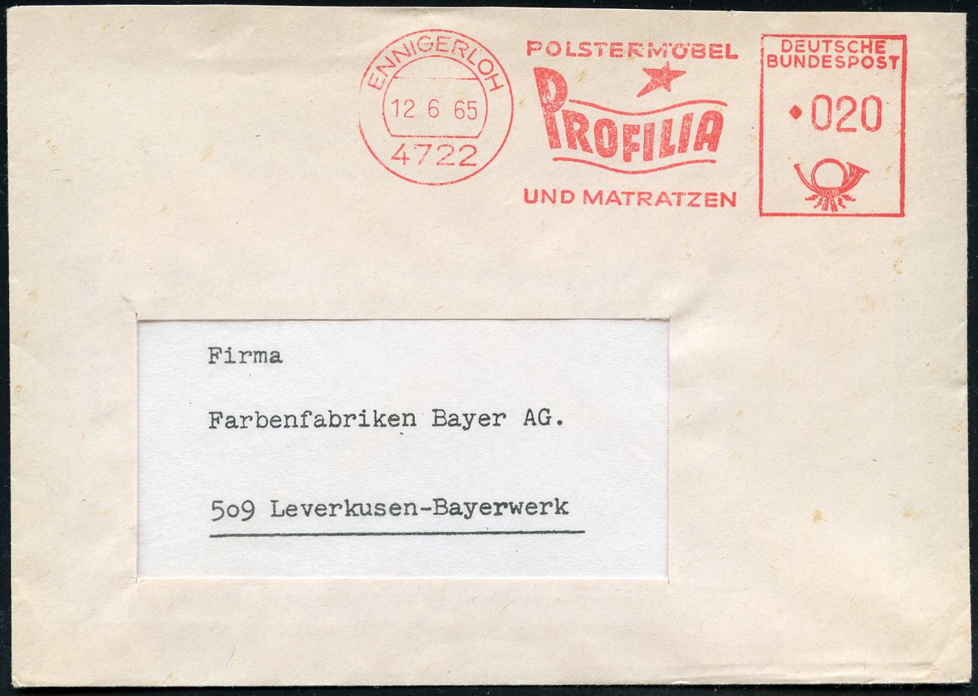 8312 | 18 € | PL-Raum 47.. (ohne Hamm) : (21a) #bzw.# 4722 ENNIGERLOH/ POLSTERMÖBEL/ PROFILA/ U.MATRATZEN 1961/65 2 verschiedene AFS Francotyp (Stern) je rs. Abs.-Vordruck (Einzelverkauf möglich: je 10.- EUR) 2 Belege (Dü.E-23DO) | ![]() ![]() ![]() | |