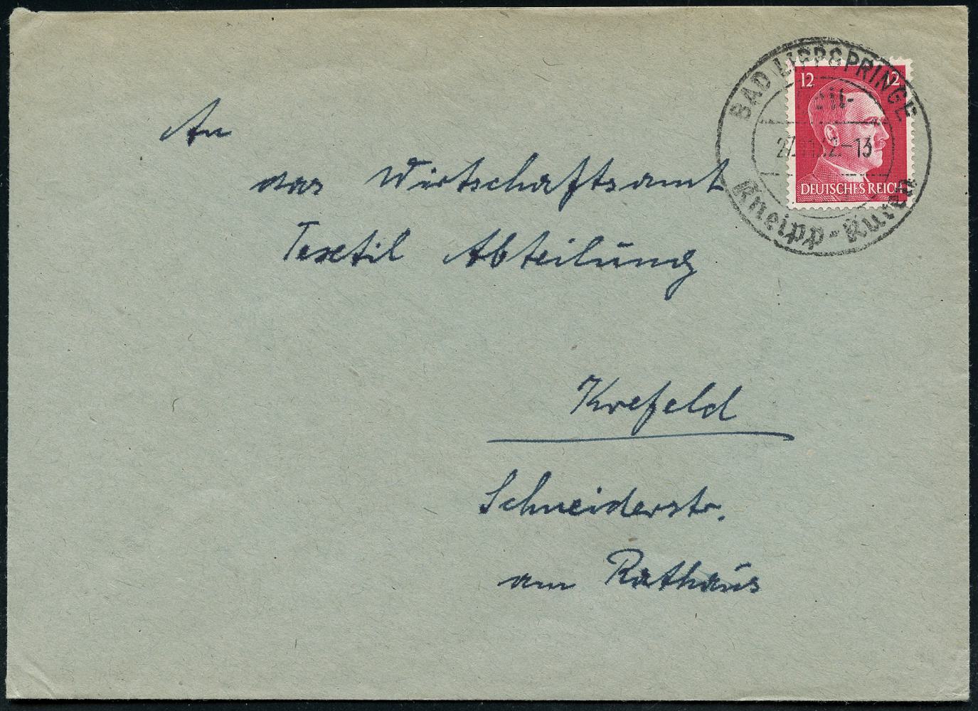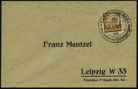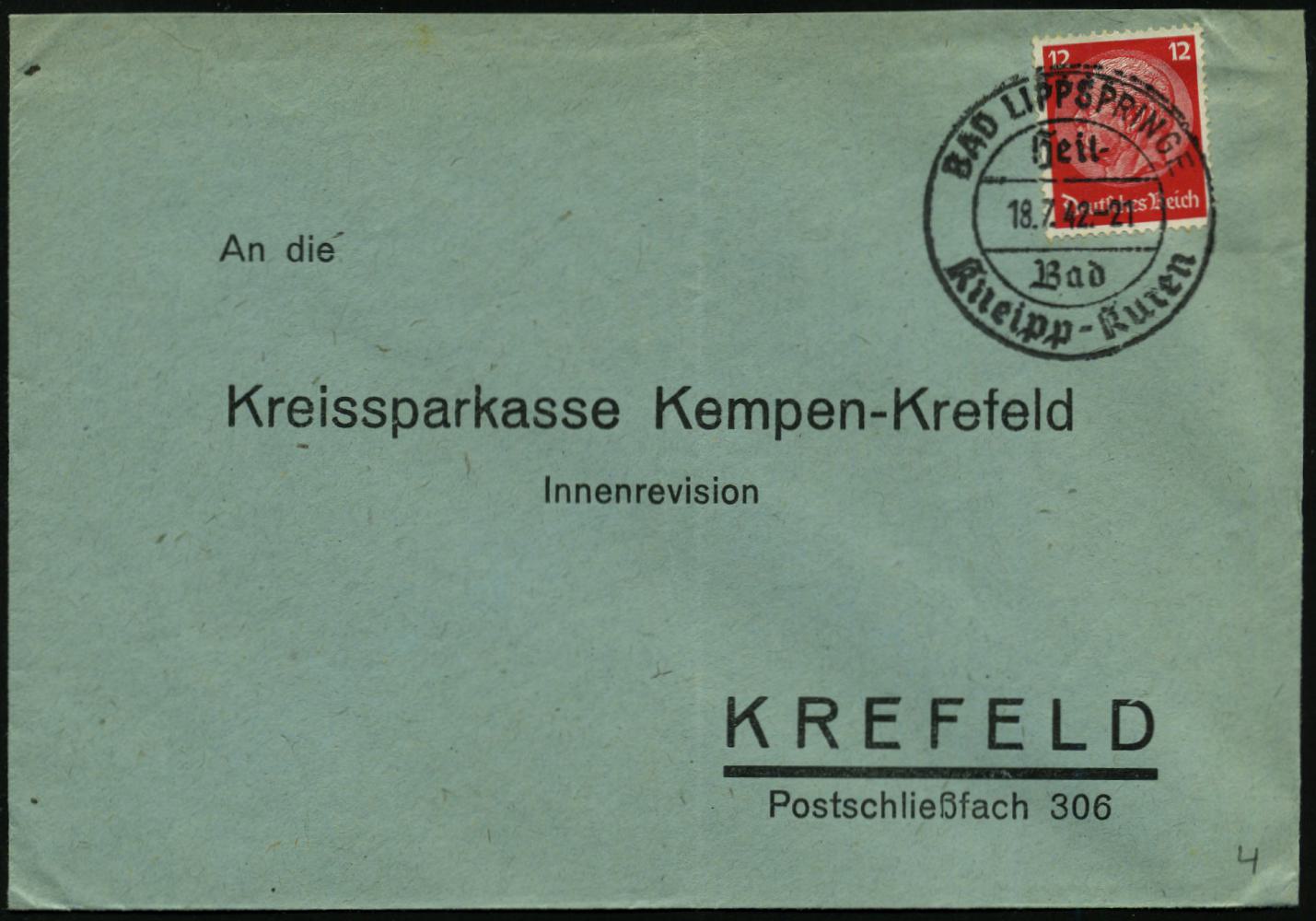 8287 | 15 € | PL-Raum 47.. (ohne Hamm) : BAD LIPPSPRINGE/ Heil-/ Bad/ Kneipp-Kuren 1942 (27.11.) HWSt auf EF 12 Pf. Hitler , Bedarfs-Bf. (Bo.4) | ![]() | |