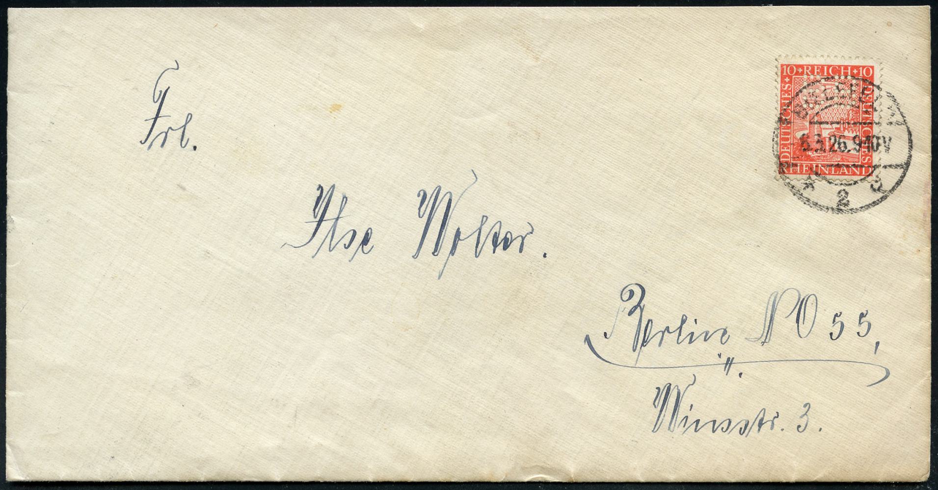 8401 | 15 € | 4800 Bielefeld allgem. Belege, Tagestempel etc. : BIELEFELD/ * 2 a 1926 (8.3.) 1K-Brücke auf EF 10 Pf. "Jahrtausenfeier Rheinland" mit Firmenlochung "B B." , privat verwebdet auf Fern-Bf. n. Berlin (Mi.373 EF) | ![]() | |
