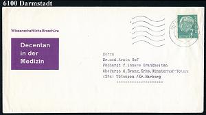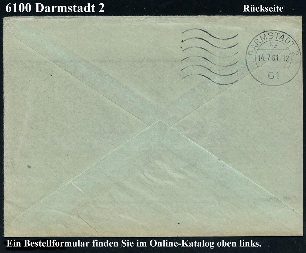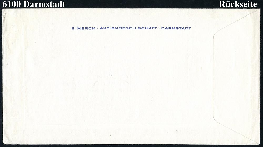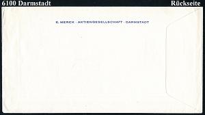 1106 | 18 € | 6100 Darmstadt Maschinen- und Serienstempel : (16) DARMSTADT 2/ sa 1961 (6.2.) MaWellenSt auf EF 7 Pf. Heuss I, Lumogen auf Pharma-Drs. Fa. Merck, früher PTZ-Automations-Beleg! (Mi.181 y = Lumo !, EF) | ![]() ![]() | |