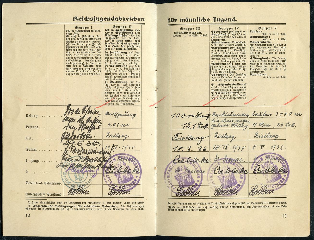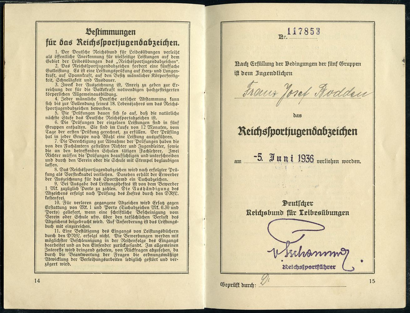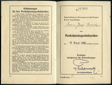 8667 | 30 € | PL-Raum 48.. (ohne Bielefeld) : Rietberg 1936 (Juni) orig. Leistungsbuch des Deutschen Reichsbundes für Leibesübungen (16 Seiten) mit Lichtbild eines Gymnasiasten aus Rietberg, div. Leistungsnachweise + viol. Faksimile-Stempel "v. Tschammer" Reichssportführer u. Chef des Nat. Olymp. Komitees, erstklassig! (Format DIN A5) | ![]() ![]() ![]() ![]() | |
