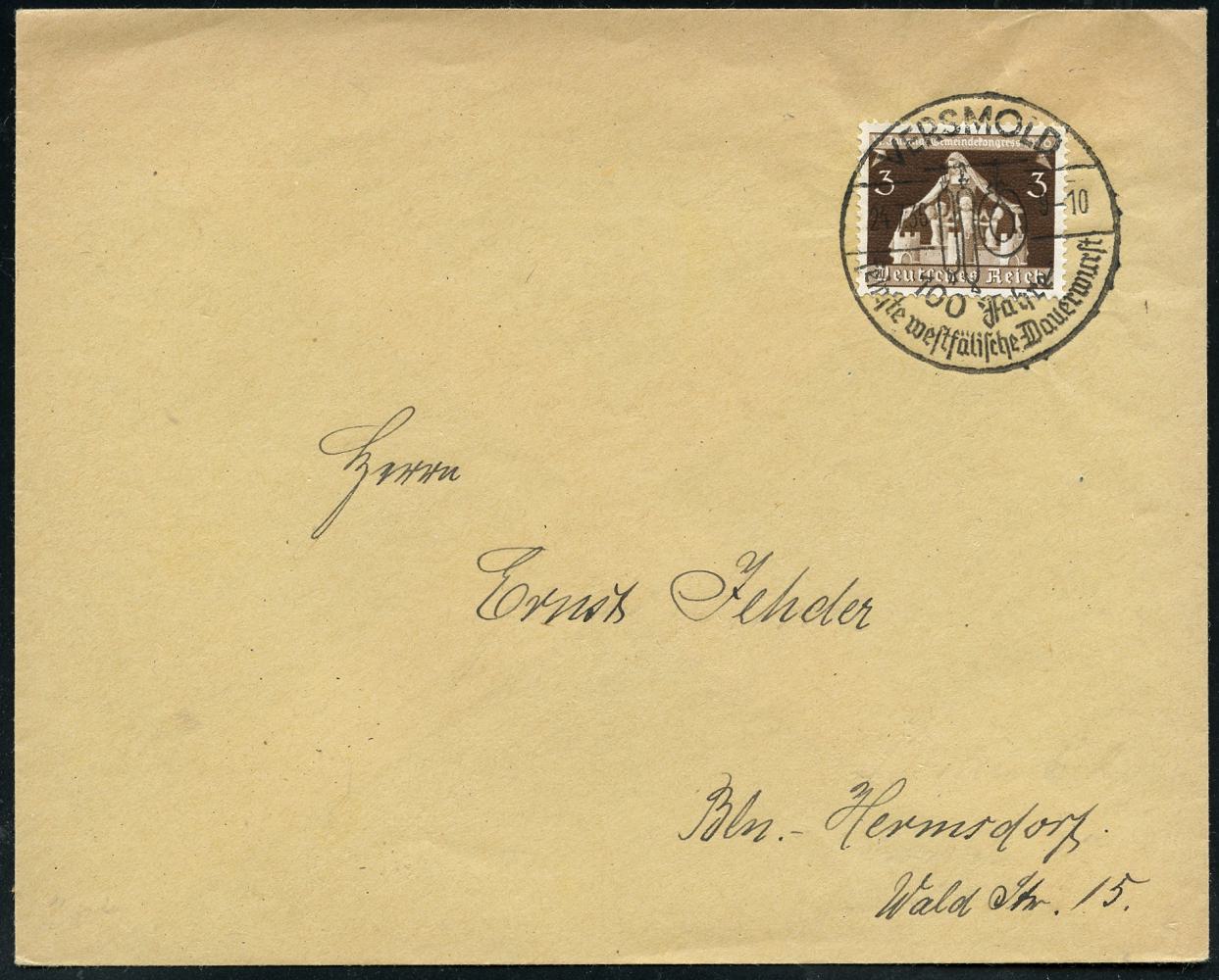 8680 | 16 € | PL-Raum 48.. (ohne Bielefeld) : VERSMOLD/ 100 Jahre/ feinste westfälische Dauerwurst 1936 (24.7.) HWSt (Wurst-Ring, 2 Würste) klar gest. Inl.-Bf. (Bo.2) | ![]() | |