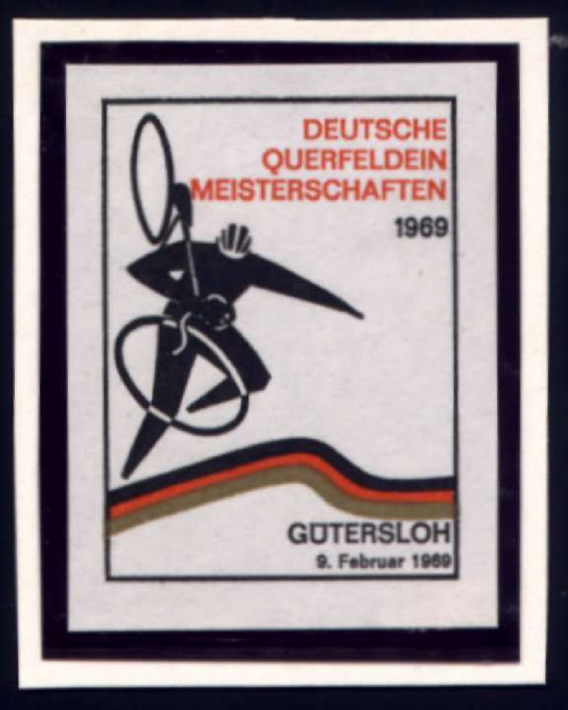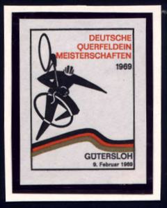 8650 | 10 € | PL-Raum 48.. (ohne Bielefeld) : Gütersloh 1969 (9.2.) offiz., ungez. Vignette.: DEUTSCHE QUERFELDEIN MEISTERSCHAFTEN 1969 = Rennfahrer (u. Flagge) orig.G. | ![]() | |