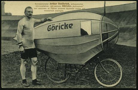 8626 | 20 € | PL-Raum 48.. (ohne Bielefeld) : Gütersloh 1908 s/w.-Foto-Reklame-Ak.: Europameister Arthur Stellbrink mit Stromlinie-Rennrad v. Göricke "Schrapnell" = Europameister der Steher, 1908, später auch Sechstage-Fahrer etc. (rs. Text), ungebr., selten! | ![]() | |
